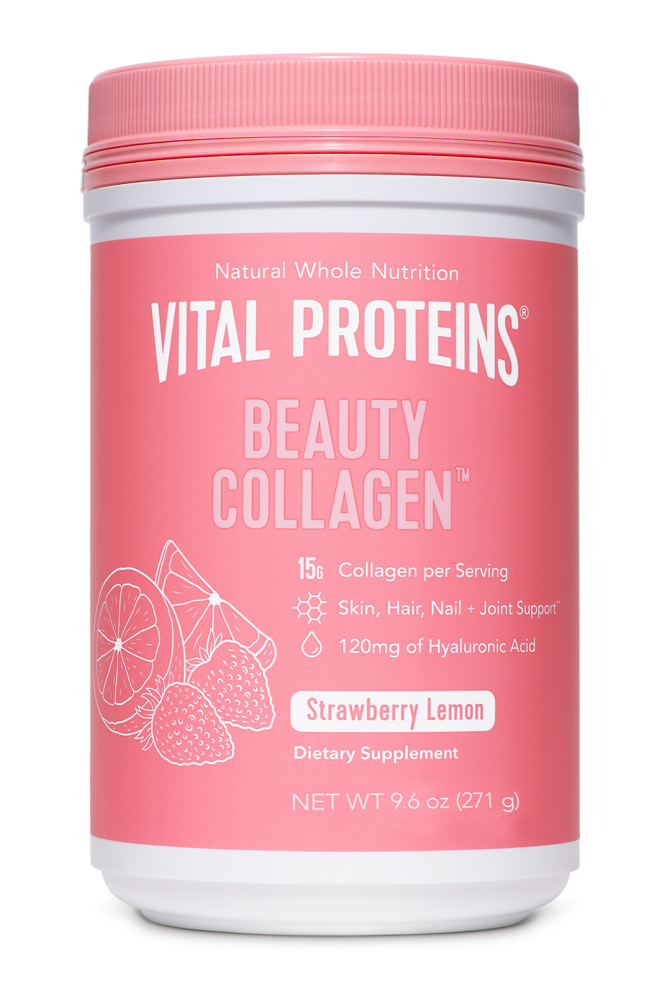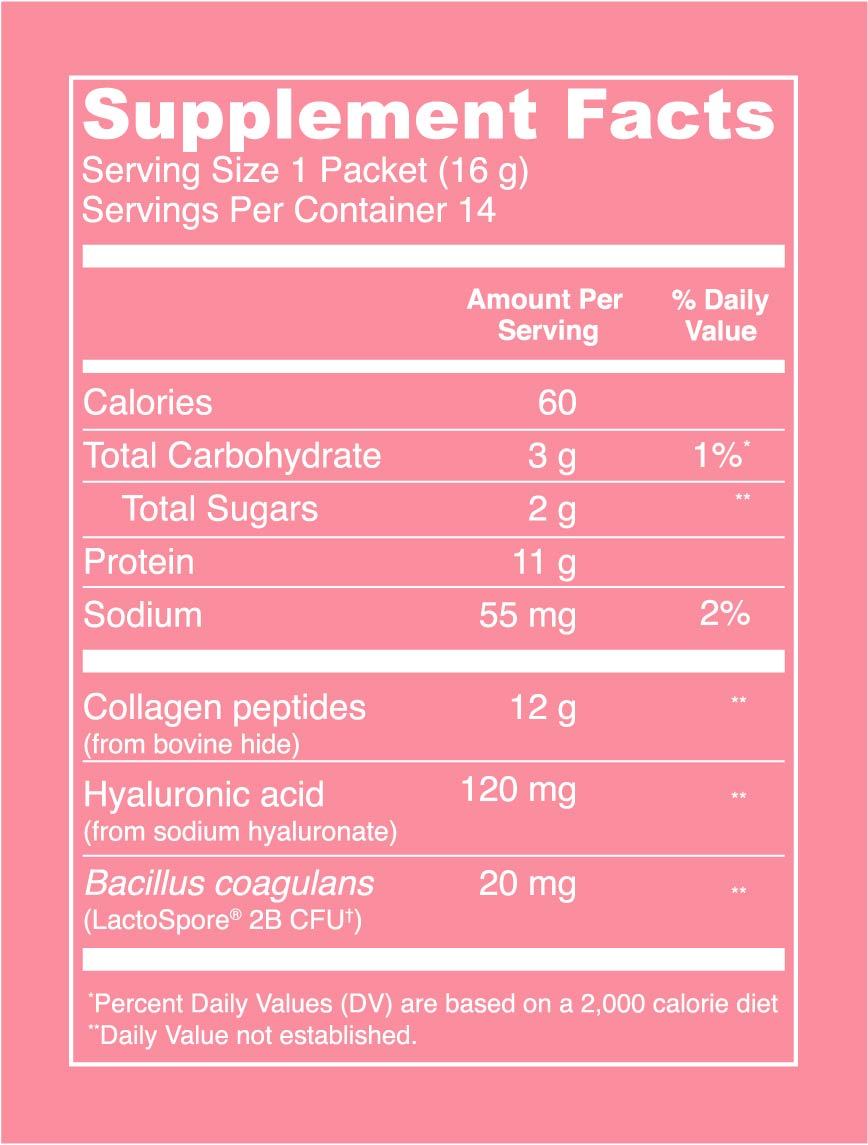 Nourish your inner glow with our Beauty Collagen™ — a deliciously subtle blend of bovine hide collagen peptides, hyaluronic acid, probiotics, organic strawberry and organic lemon — which helps support hair, skin and nails.**