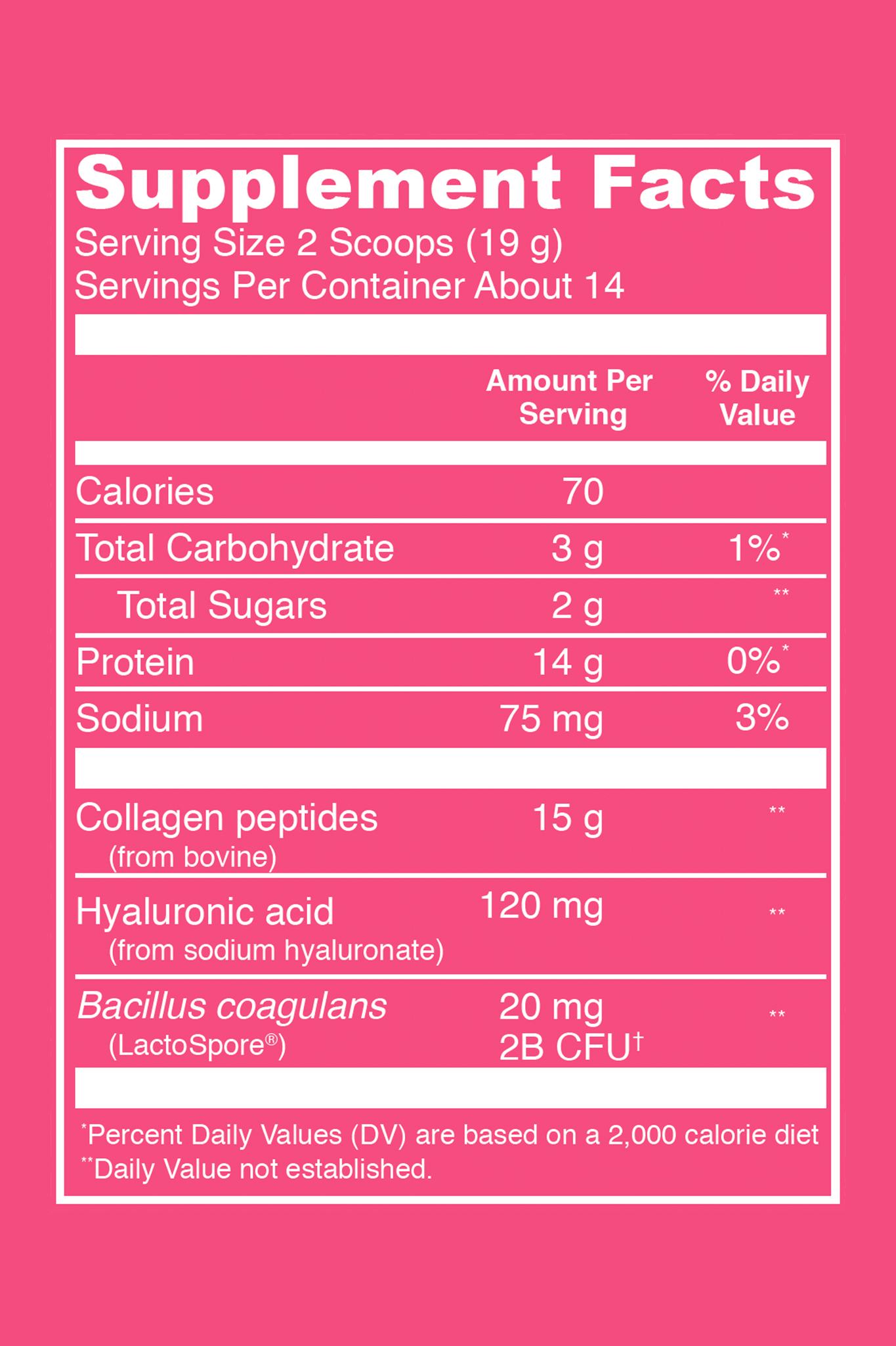 Summer is here to stay with this Beauty Collagen™ offering, a nourishing elixir for hair, skin and nails** that’s made with collagen peptides, hyaluronic acid, probiotics, organic pineapple juice powder, organic orange juice powder, organic cranberry powder and organic ginger.