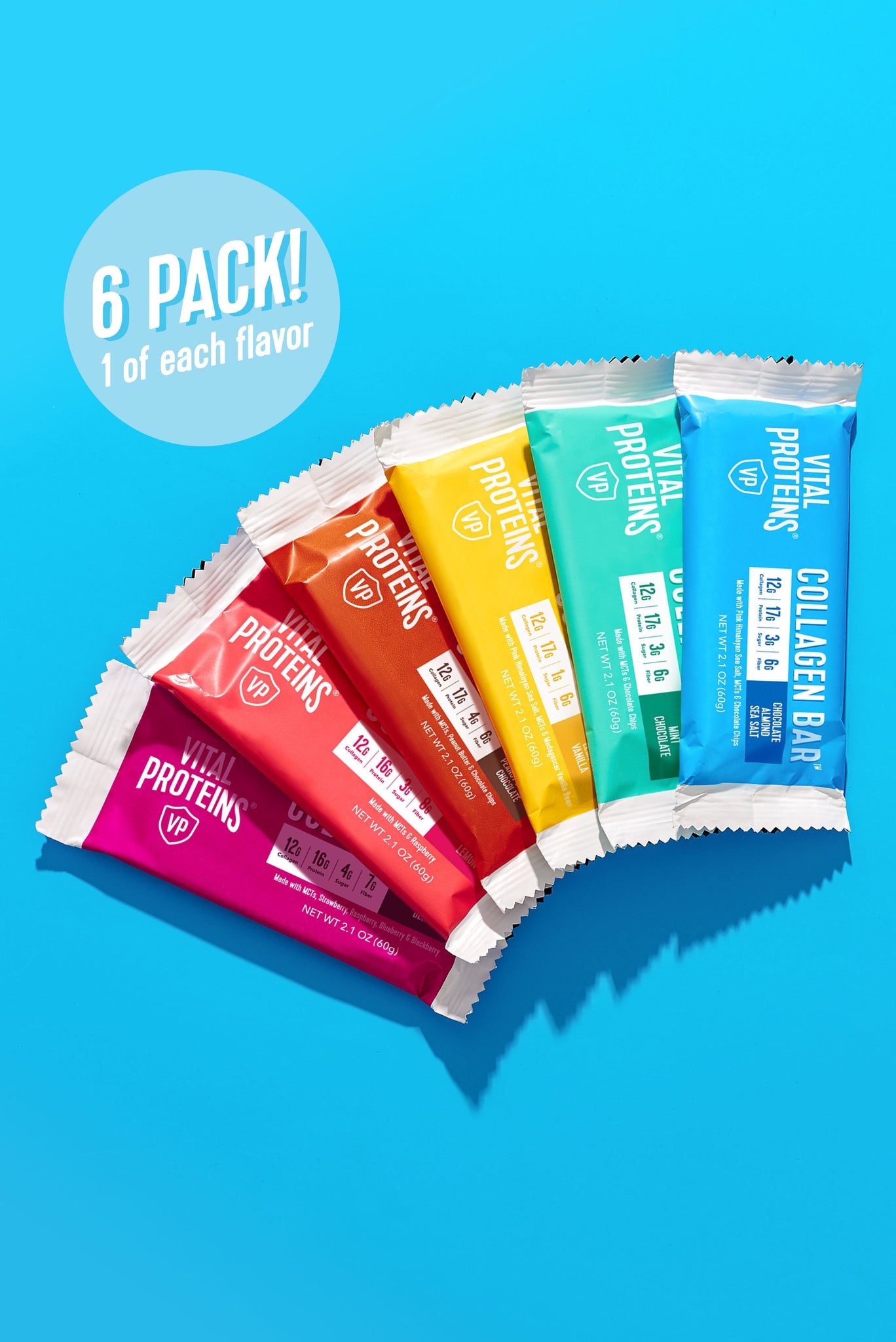 Try each one of our NEW Collagen Bars™ with our 6 Pack Variety Bundle! This pack features one bar of every flavor for the tastiest way to boost your collagen intake. Containing 12g of collagen, 16-17g of protein and 4g of sugar or less, each bar makes every moment worth biting for.