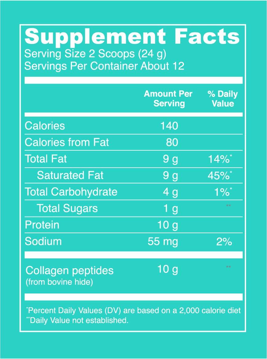 Our Coconut Collagen Creamer™ is a healthy, delicious addition to your morning coffee. It has healthy fats from organic coconut milk powder, plus 10g of collagen peptides sourced from grass-fed, pasture-raised bovine. Paleo Friendly and Whole30® Approved, our coconut creamer is free of dairy, soy, carrageenan, gluten, artificial sweeteners and added sugars.