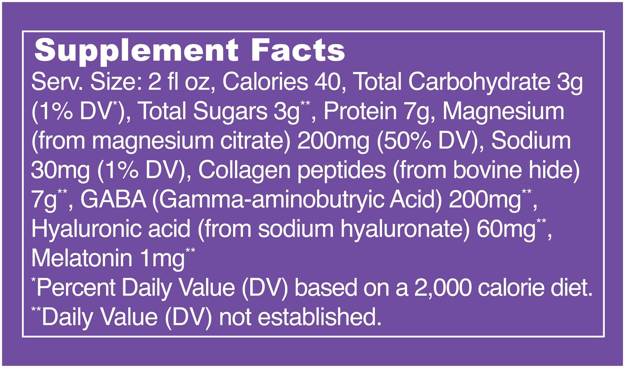 Keep on dreamin’. Nod off with a delicate blend of blueberry and lavender flavors brimming with function from 7g of collagen peptides and sleep-inducing ingredients, like melatonin, magnesium and GABA.