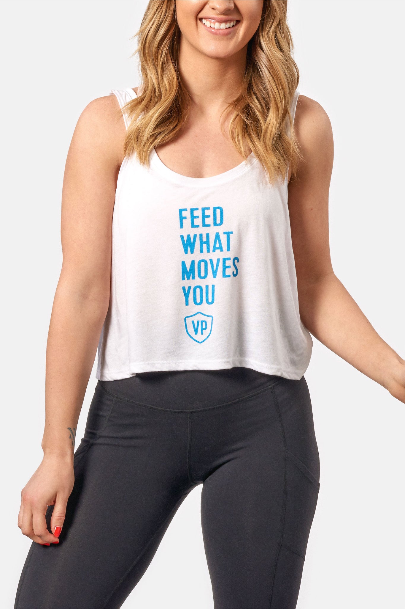 Stay cool and comfortable with this new Vital Proteins White Flowy Tank fit for all lifestyles. Show how you Feed What Moves You™.