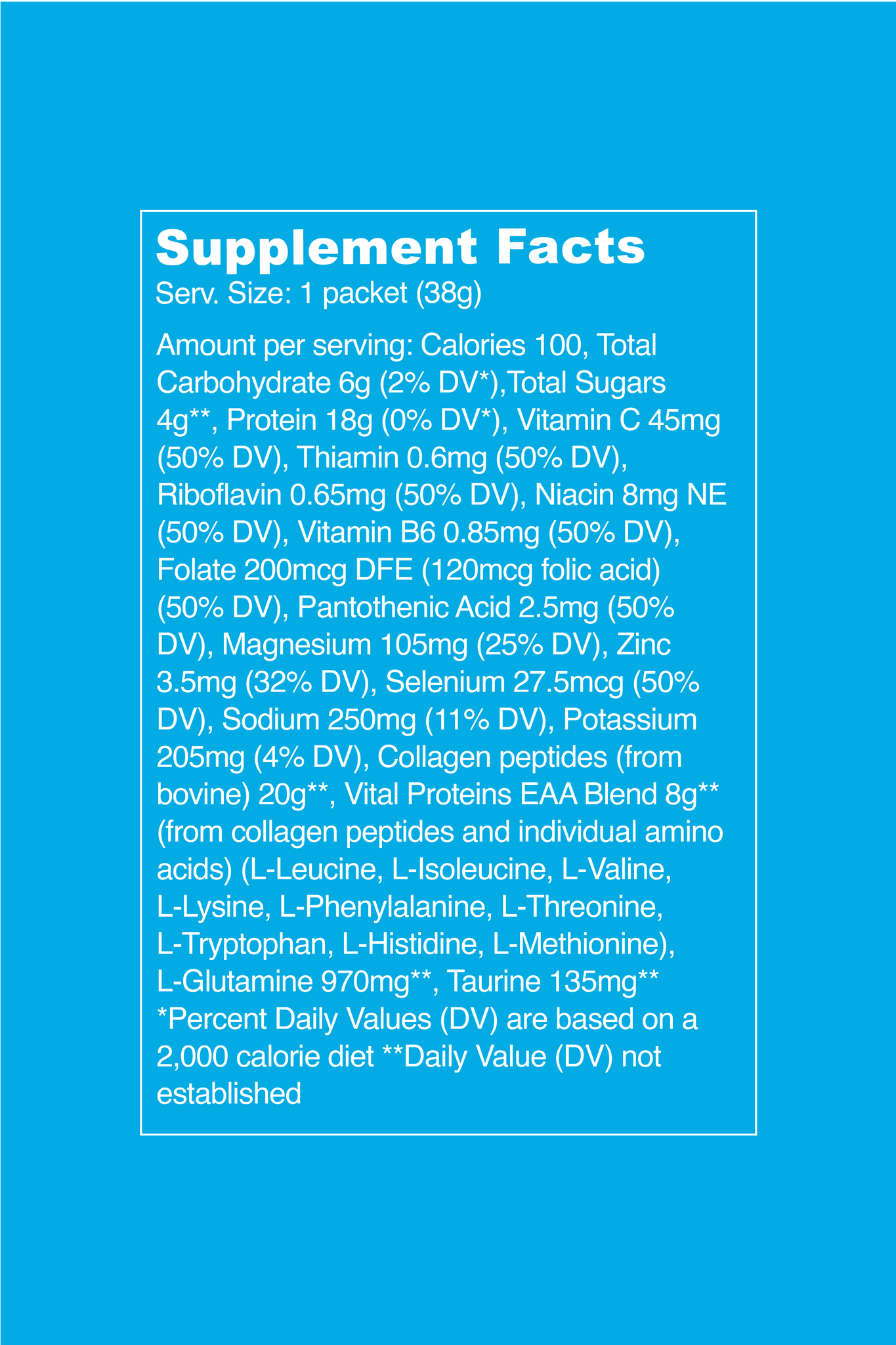 Support muscles and joints during and after every training session with RECOVER - a combination of ALL 9 Essential Amino Acids (EAA) plus 20g Collagen Peptides. 5g of Branched-Chain Amino Acids (BCAA) help support protein and collagen synthesis, while added glutamine, the most abundant amino acid in the body, helps keep up with increased demand caused by intense training.