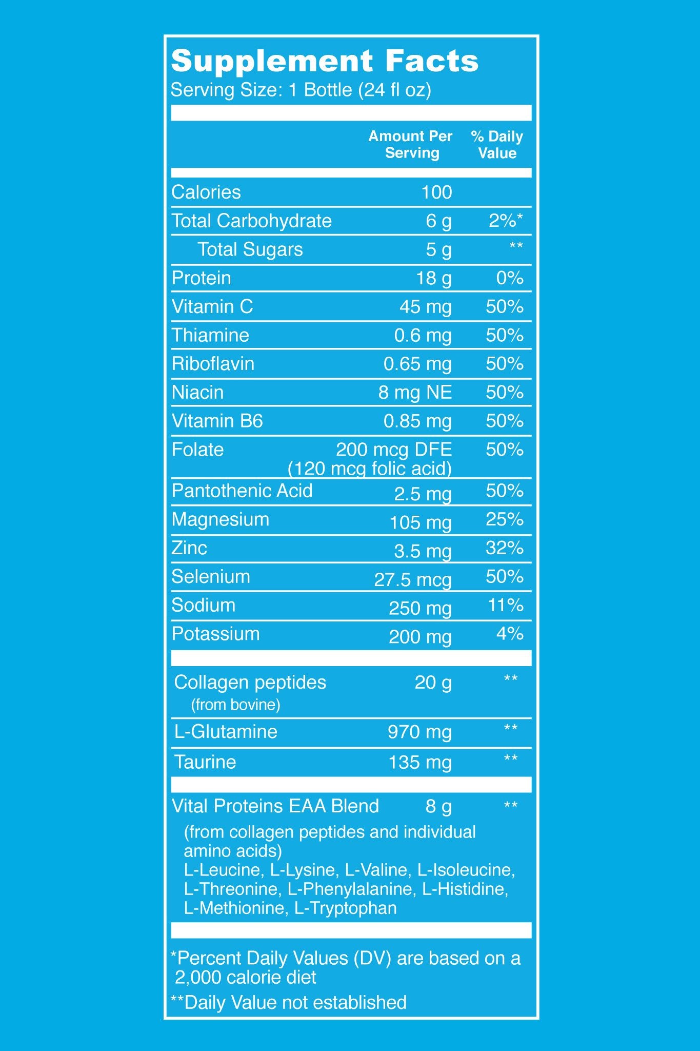 Support muscles and joints during and after every training session with Vital Performance™ RECOVER - a combination of 8g of all 9 Essential Amino Acids (EAAs) plus 20g Collagen Peptides. 5g of Branched-Chain Amino Acids (BCAAs) help support protein and collagen synthesis, while added glutamine, the most abundant amino acid in the body, helps keep up with increased demand caused by intense training.